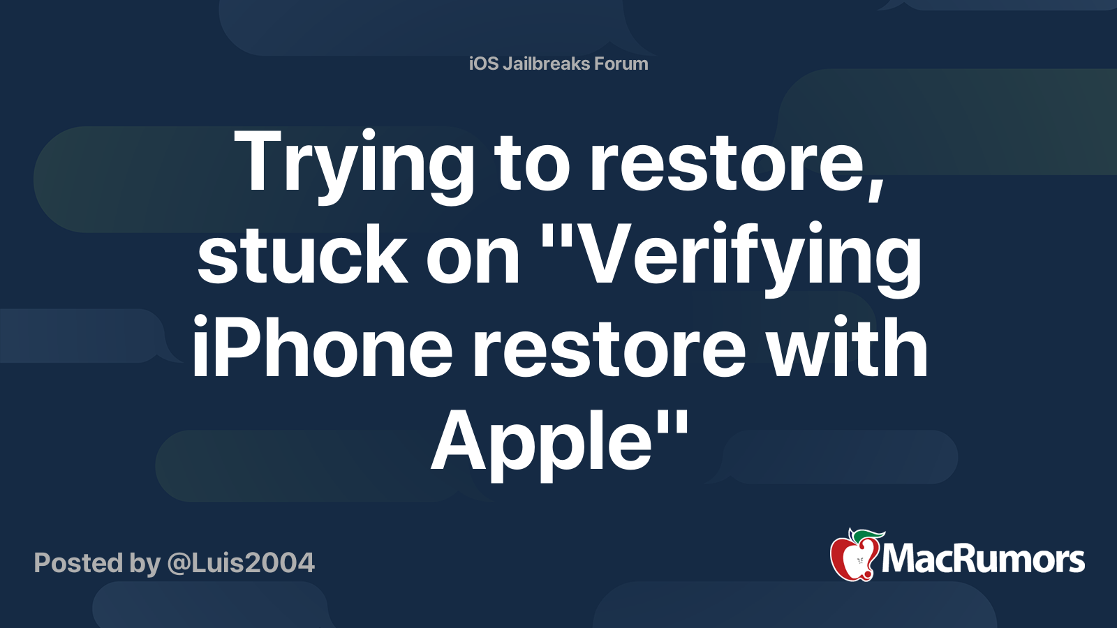 Trying To Restore Stuck On Verifying Iphone Restore With Apple Macrumors Forums