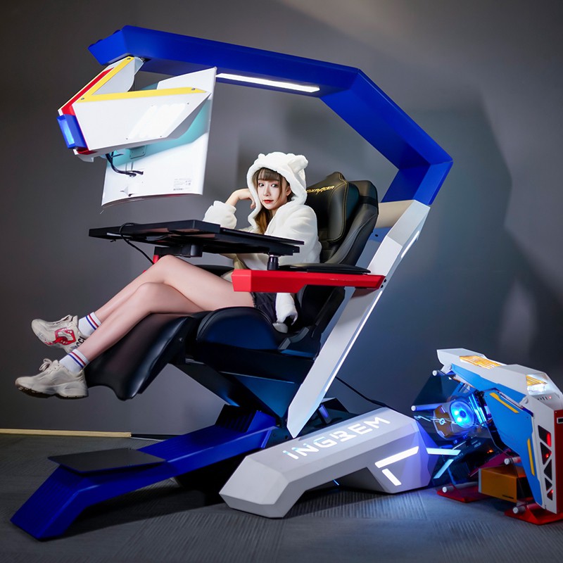 Amazon Com Ingrem Ergonomic Gaming Computer Chair Game Cockpit Gaming Equipment All In One Computer Seat E Sports Space Capsule Zero Gravity Office Chair Coding Pod 2 0 White Blue Home Kitchen